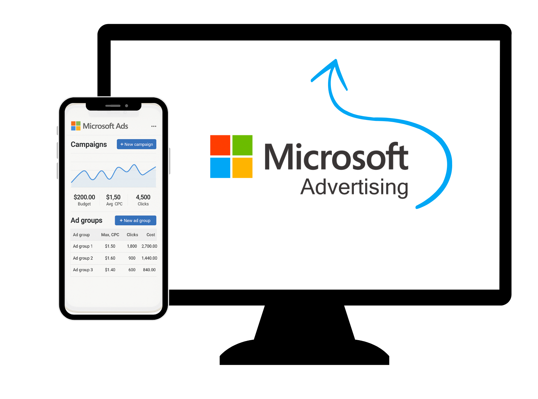 To system reklamowy bardzo podobny do Google Ads, w którym Twoje reklamy pojawiają się w wynikach wyszukiwania Bing, Yahoo i partnerów Microsoftu.